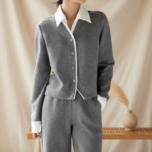 [옷자락]여성 레이어드 셔츠와 니트 투피스 세트
