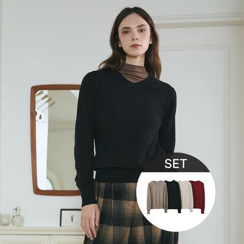 [로코엘라]펠튼 여성 린넨 블렌딩 케이블 V넥 니트 4종세트