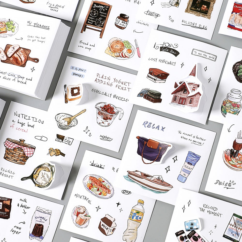 일상 집 다꾸스티커 50매 음식 여행 홈카페 종이 스티커북 다이어리꾸미기