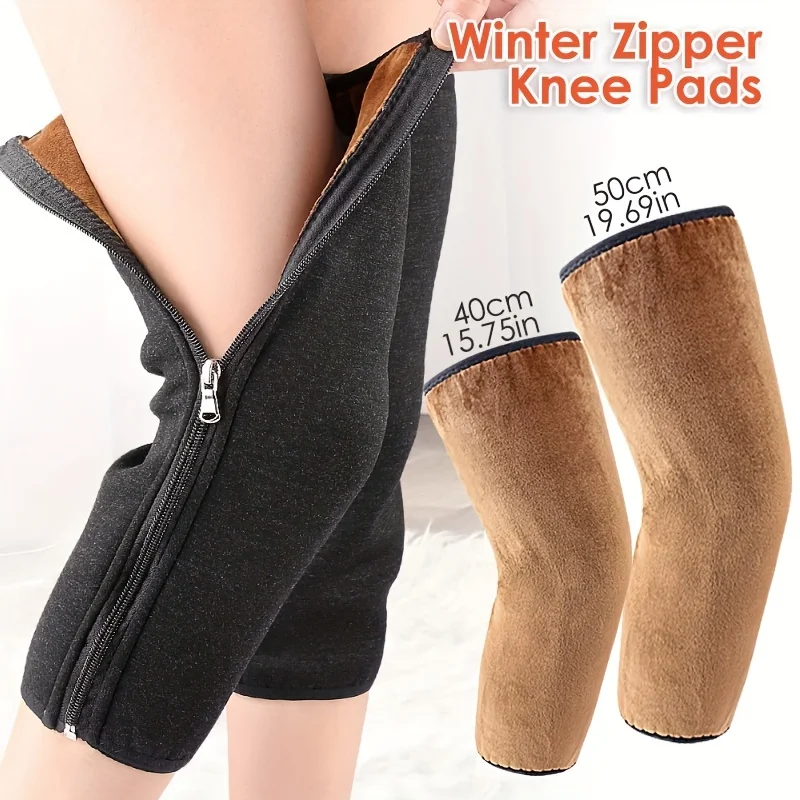 두꺼운 풀 플리스 무릎 보호대 - 1쌍 가을 및 겨울 이중층 따뜻한 지퍼 무릎 보호대 겨울 추위 다리 관절염 지원