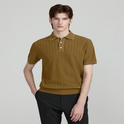 닥스 남성 코튼 강연 다크옐로우 헤링본조직 카라넥 반팔 스웨터 (DMSW5BN01Y3)