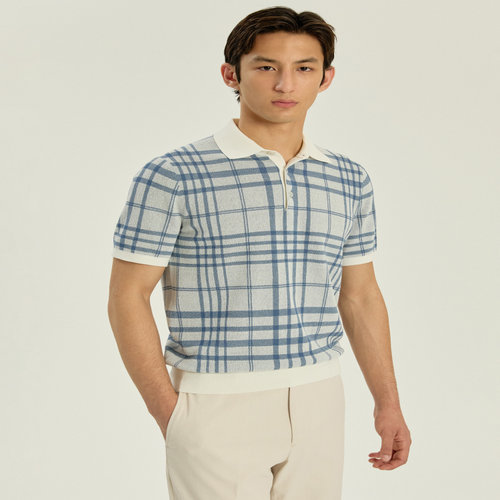 닥스 남성 라이트블루 코튼 혼방 타탄체크 반팔 스웨터 (DMSW6B054B1)