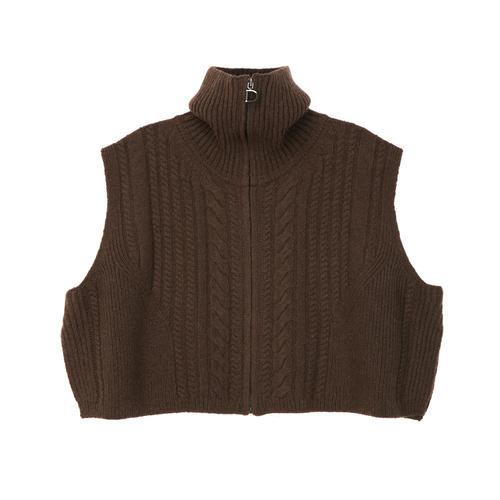 닥스 여성 카키 알파카혼방 케이블 하이넥 집업 베스트 (DLSW6A029K2)