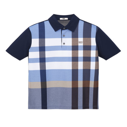 닥스 남성 네이비 DAKS 시그니쳐 체크 반팔 티셔츠 (DMTS6B001N2)