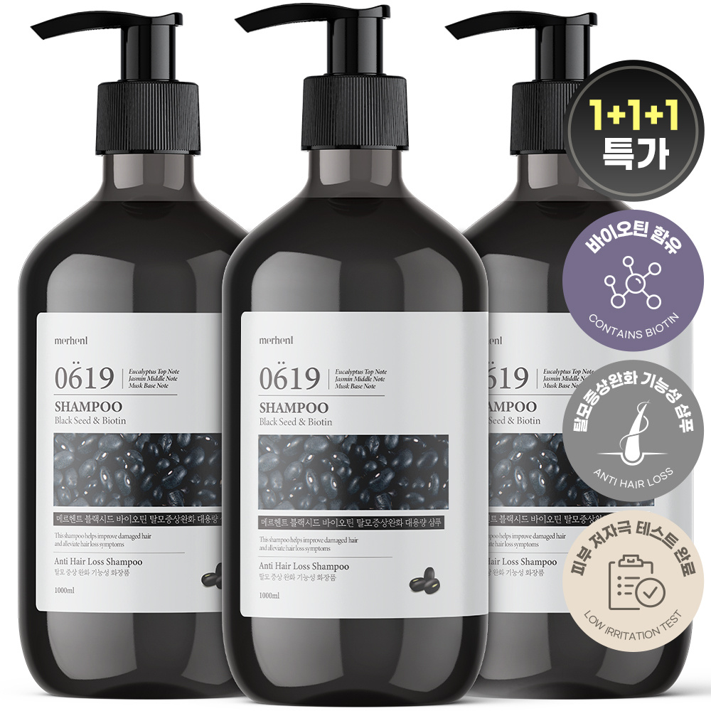 TEMU 1+1+1 메르헨트 블랙시드 바이오틴 탈모샴푸 1000ml 대용량 비오틴 검은콩 흑곡 약산성 정수리냄새