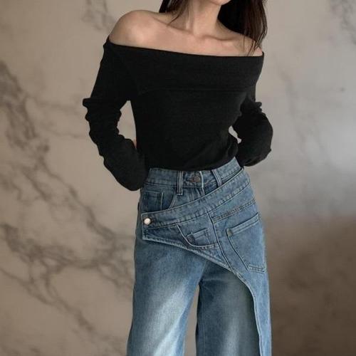 [다잇템][다잇템] 여성 단가라 볼드숄더 긴팔티 민무늬 티셔츠_22696383_588872