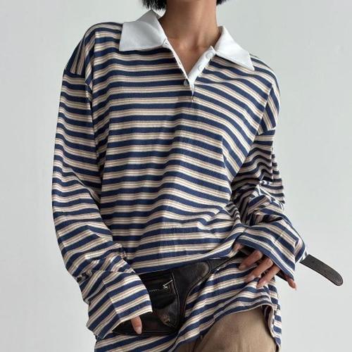 소니오 여성용 잔스트라이프 긴팔 티셔츠