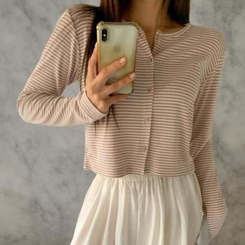 [핑크시슬리] 케일리 스트라이프 세미크롭 긴팔티