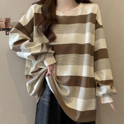 [오너클랜]인기상품 여성용 스트라이프 루즈핏 데일리 긴팔 티셔츠 캐주얼맨투맨 [WFLLQW8_260305]