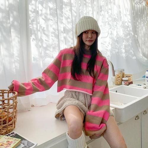 여성 넓은 스트라이프 맨투맨 1P 박스핏 긴팔티 패션 WFK2BSB