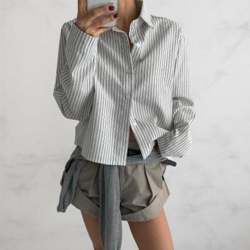 [다잇템]여성 단가라 세미크롭 박시핏 코튼 FW 셔츠