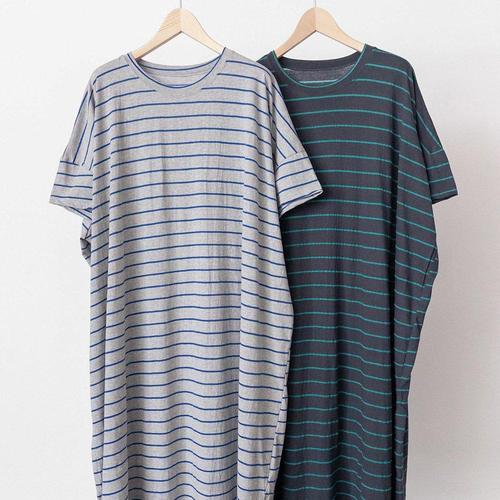 [옷자락] 여자 스트라이프 빅사이즈 홈웨어 밑트임 면 롱원피스