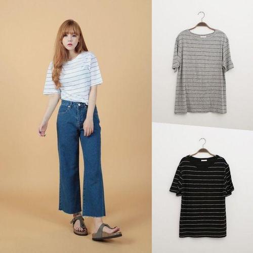 청바지와잘어울리는 스트라이프 라운드넥 여성 반팔티