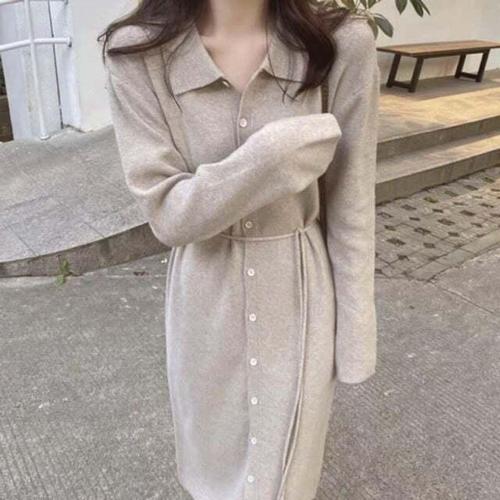 [셀럽하우스]루즈핏 XFNL9806 셔츠형 윈터 롱 니트 따뜻 원피스 단정 카라