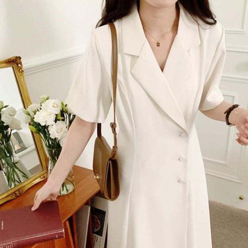 [셀럽하우스]여성 ZJFE3879 소매단추포인트 서츠형 허리벨트 단정한 원피스
