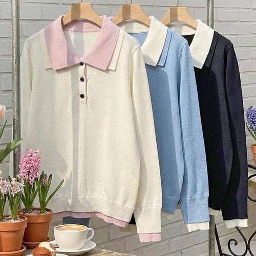 [셀러허브_여성트랜드패션]여자 배색 단정핏 캐주얼 데일리 카라 니트