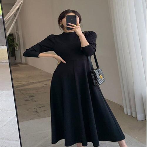 [셀럽하우스]단정한 XYGS8932 원피스 긴팔 반목 지퍼 블랙 롱원피스