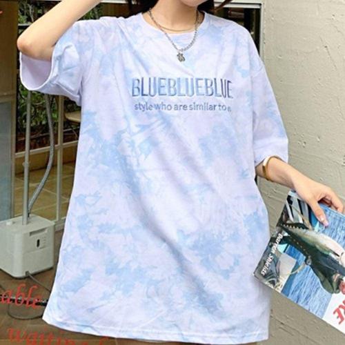 여성 파란색 물감모양 롱 반팔티 단체 학생 반티 WFAA66C