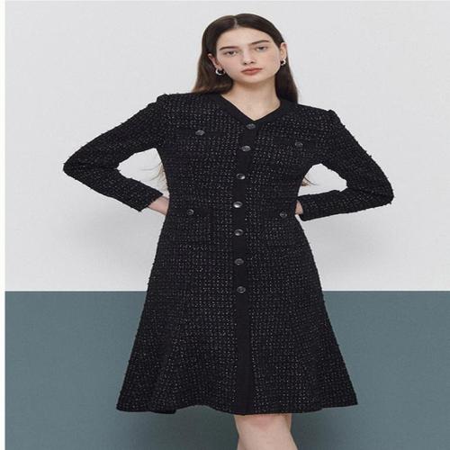 [더아이잗]브이넥 칼라 메탈 트위드 원피스 IMAA0OP02