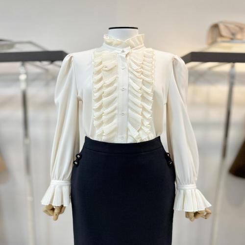 [더아이잗컬렉션]턱 디테일 하이넥 블라우스 CS2B0BL231 -DG
