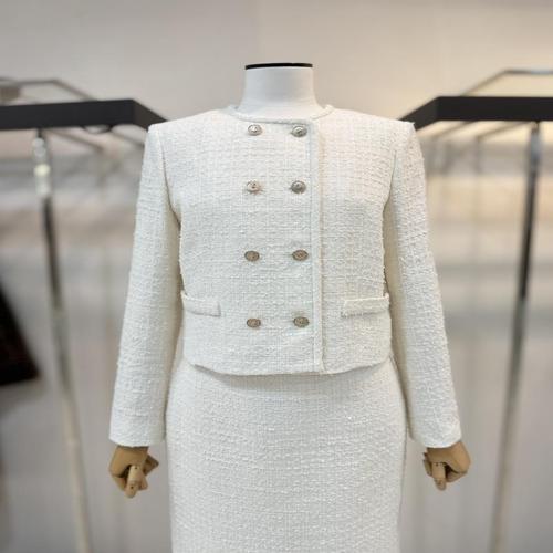[더아이잗컬렉션]트위드 라운드넥 더블 크롭 재킷 CS3B0JK062 -DG