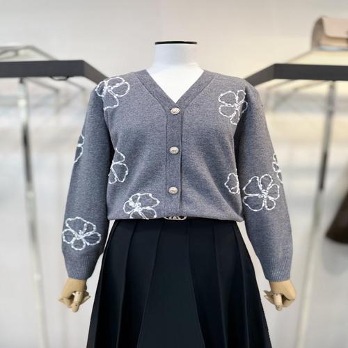 [더아이잗컬렉션]울 플라워 자수 브이넥 가디건 CS2B1CD012 -DG