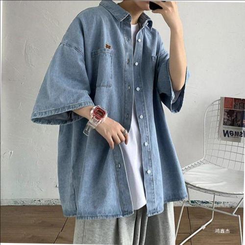 남자 반팔 데님 셔츠 데님셔츠 여름 청남방 웨스턴