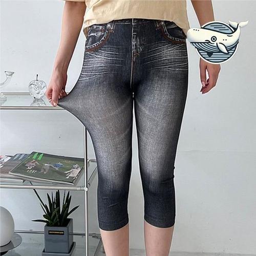 [다잇템][다잇템] 여자 칠부 파란색 워싱 데님 타이즈 검정 진 레깅스_13902184_588872