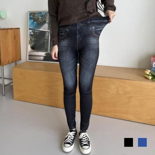 [다잇템][다잇템] 여자 파란색 진 워싱 FW 데님 검정 보온 레깅스_13902187_588872