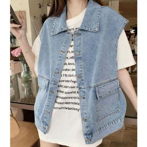 캐주얼한 패션으로 코디하기 간편한 데님 소재 여성 베스트 베이직한 워싱디자인 오버핏 조끼