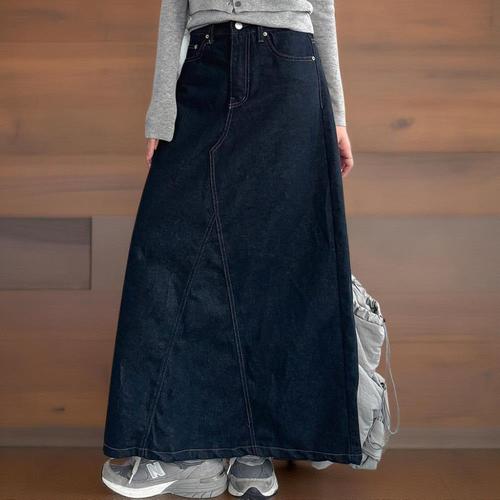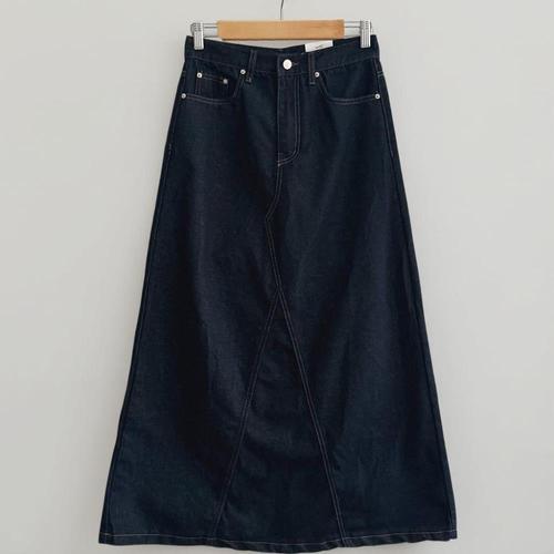 [옷자락]여자 논페이드 A라인 스티치 절개 생지데님 롱스커트
