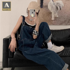 ANYOU 여성 가을철 데님 빅 사이즈 팬츠 점프슈트 멜빵 바지
