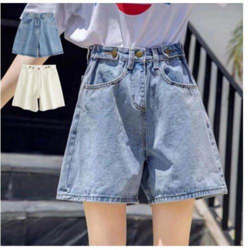 여성 단추포인트 데님 반바지 여름 캐주얼 팬츠여자 와이드 핫팬츠