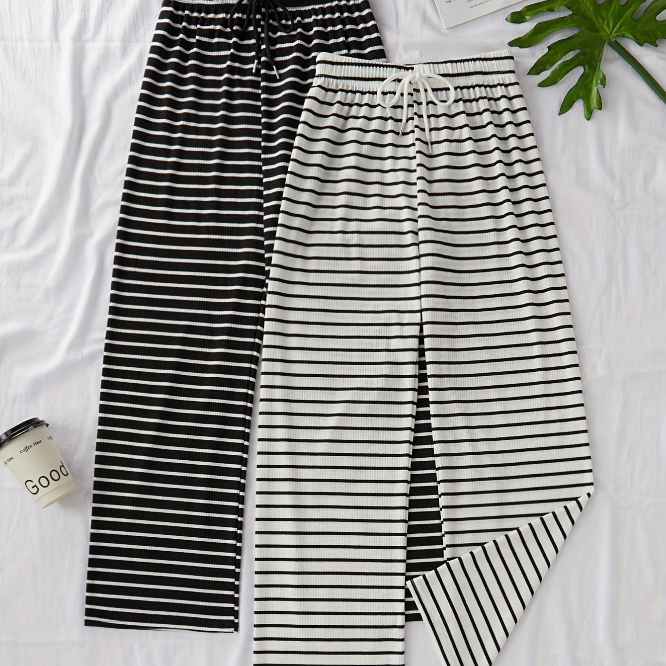 TEMU 2개 세트 블랙 & 화이트 캐주얼 드로스트링 밴드팬츠, 봄·여름·가을에 어울리는 다용도 슬림핏 팬츠