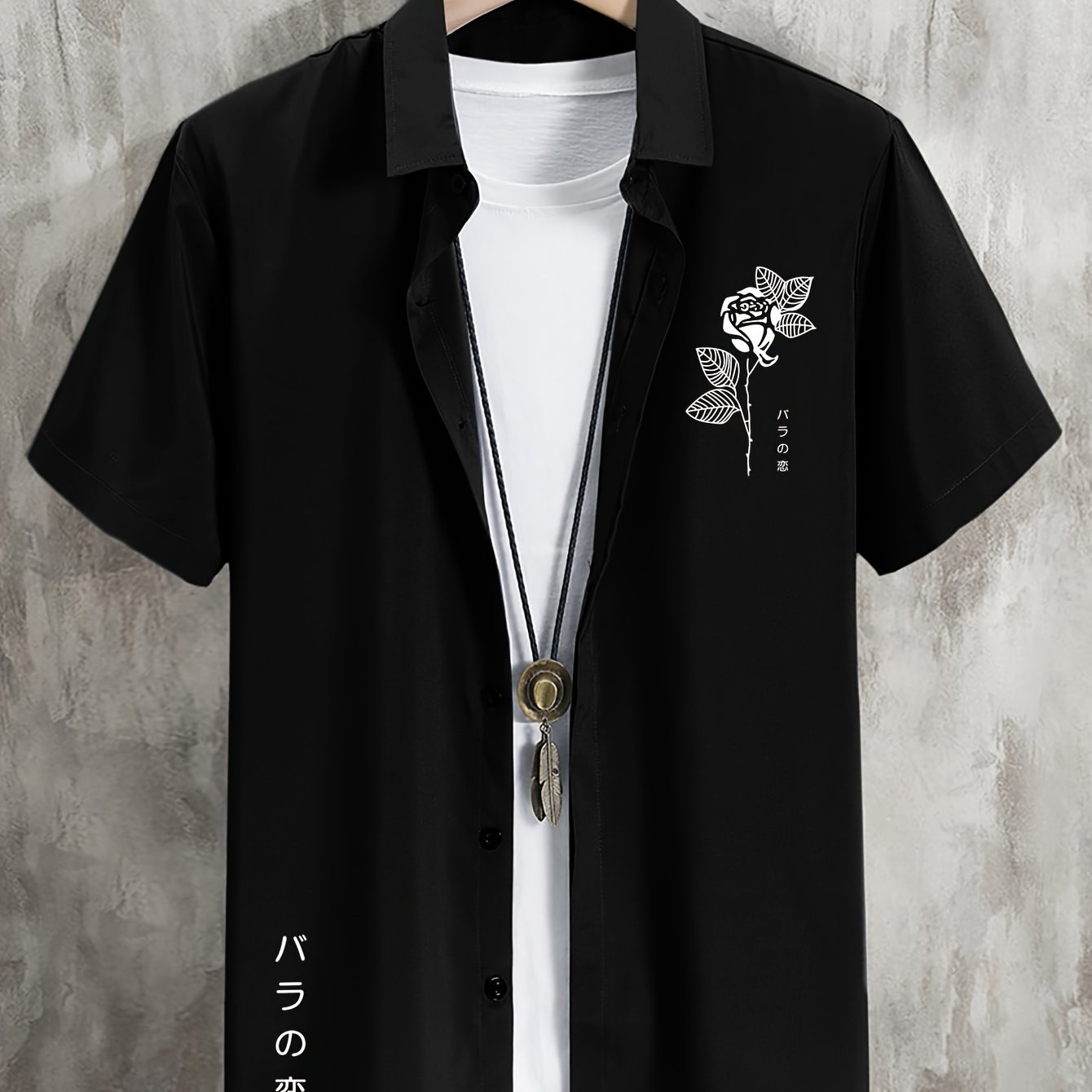 TEMU 남성용 플로럴 그래픽 프린트 셔츠, 캐주얼 라펠 버튼업 반팔 셔츠 여름 야외 활동용