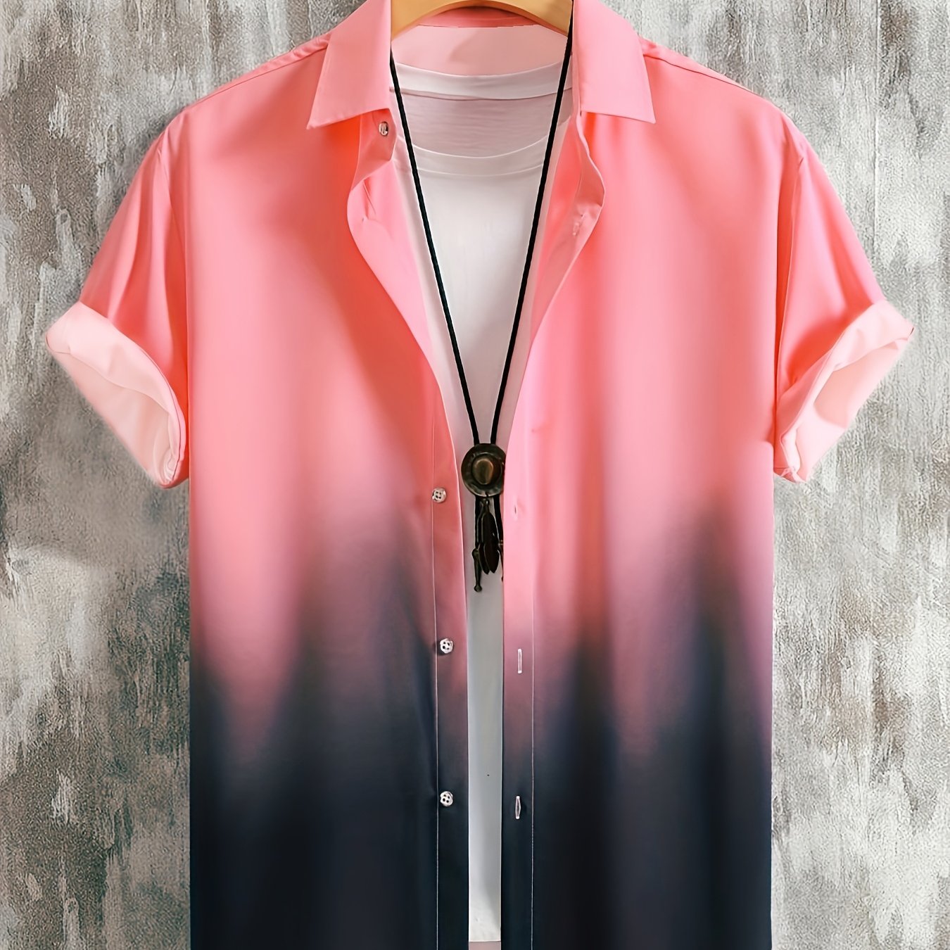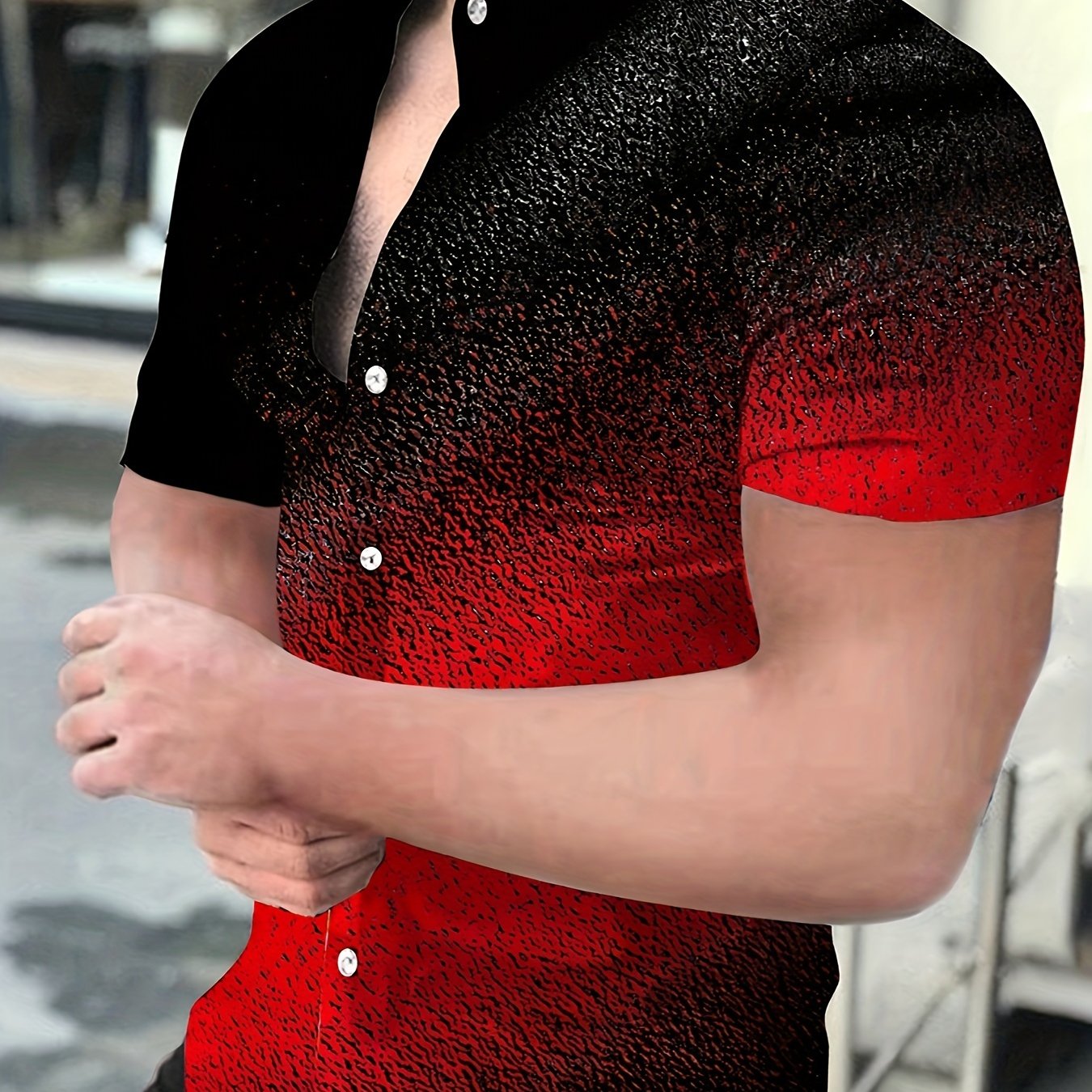 TEMU 남성용 캐주얼 반팔 셔츠, 독특한 3D 기하학 프린트 - 폴리에스테르, 가슴 포켓이 있는 버튼업, 세탁기 사용 가능, 블랙에서 레드 그라데이션