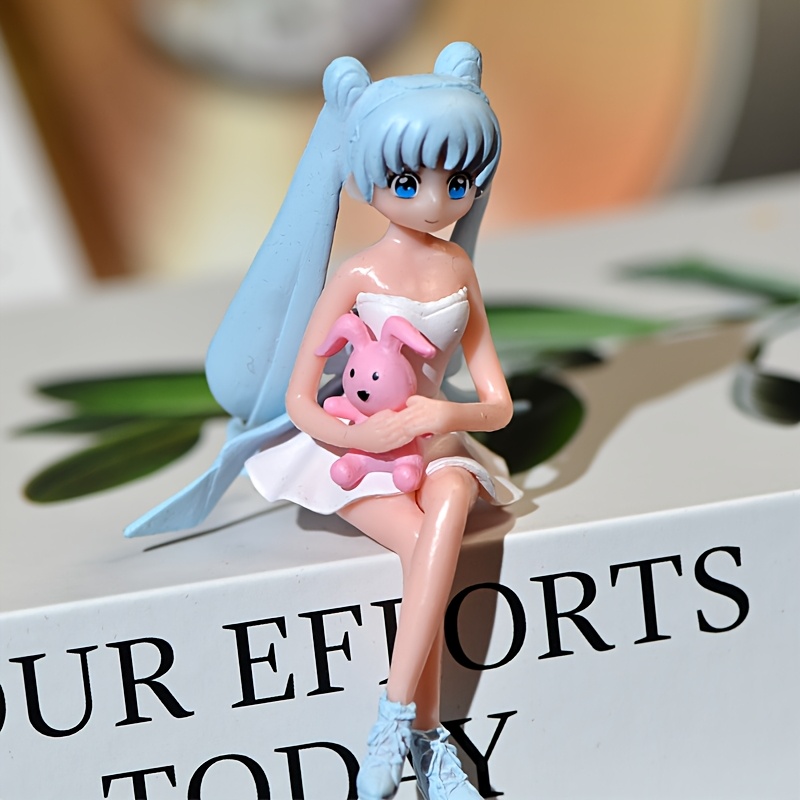 TEMU 1개 매혹적인 파스텔 블루 머리 애니메이션 소녀 피규어 - 귀여운 데스크탑 장식, 토끼 인형과 함께, 꿈꾸는 PVC 수집품, 공부 책상 & 책장용, 애니메이션 팬 & 예술 애호가를 위한 완벽한 선물, 애니메이션 액세서리