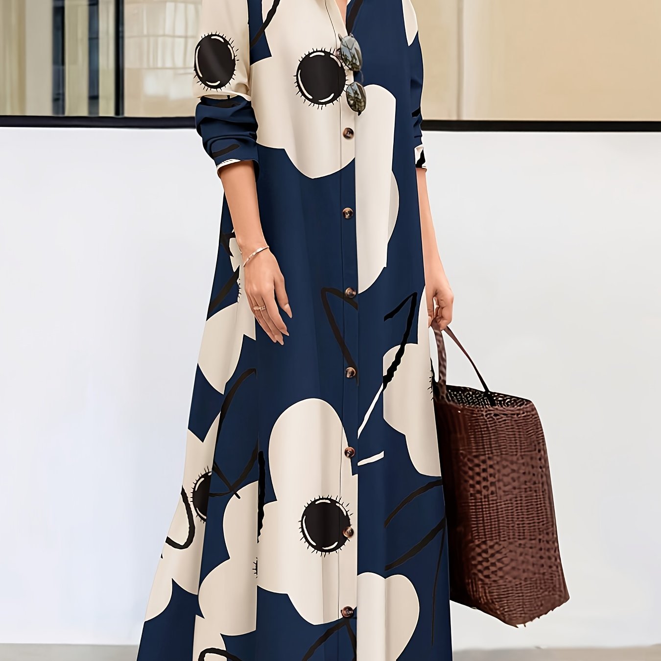 TEMU 우아한 여성용 캐주얼 롱 버튼 셔츠 드레스 (랜덤 프린트)