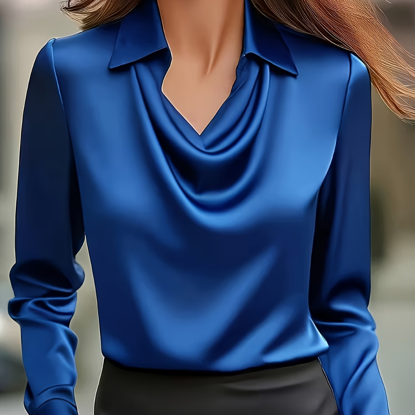 TEMU 봄/가을 인성 롱 슬리브 새틴 컬 넥 탑 셔츠 여성