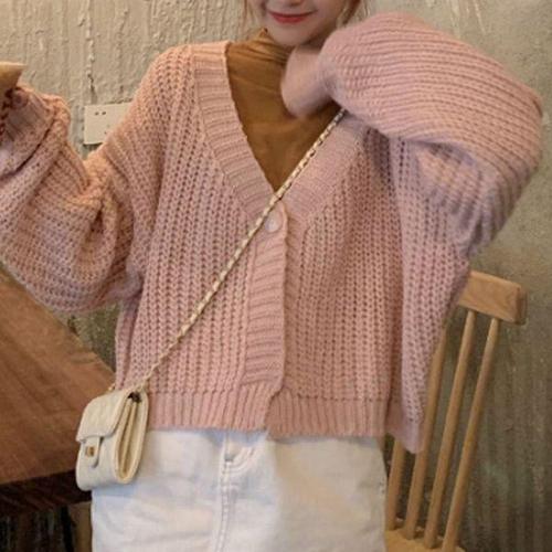 블루밍 소프트 세미크롭 니트 가을 여성 브이넥 라운드넥 데이트룩