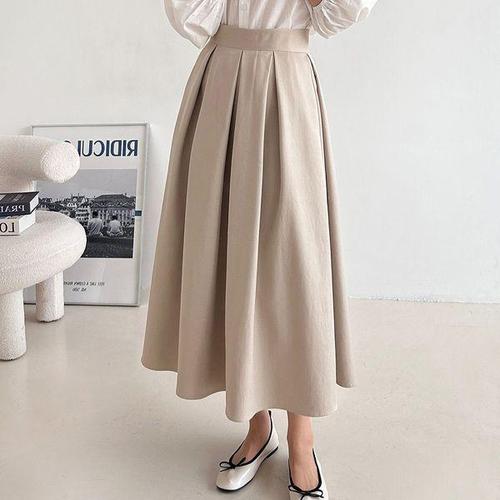 [옷자락]여자 데이트룩 하객룩 맞주름 A라인 청순 봄 롱스커트