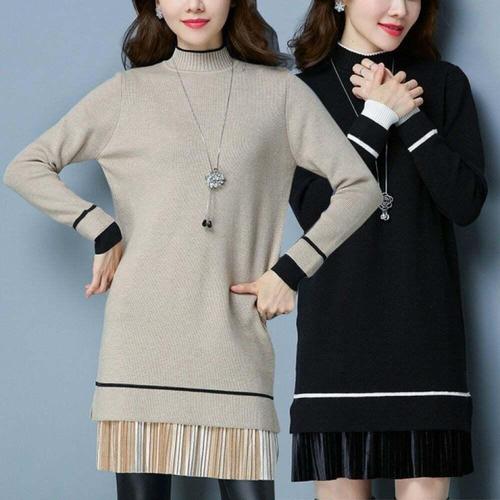 /옷자락 여자 데일리룩 케이블 니트 원피스