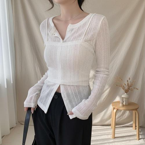 [옷자락] 여성 데일리 시스루 가디건 투피스 세트