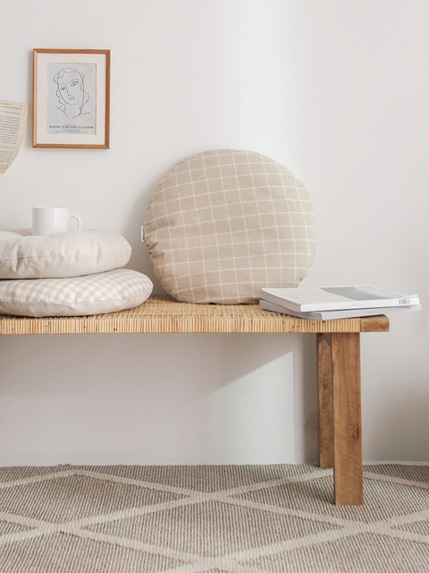 [데코뷰] 베이지 워싱린넨 원형방석