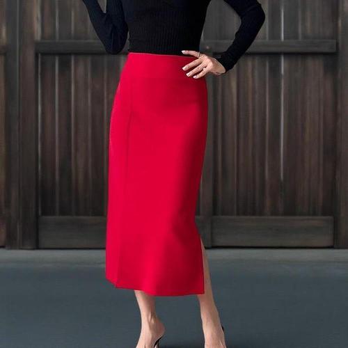 [신상오픈런]여자 절개 슬릿 앞트임 H라인 쫀쫀스판 밴딩 롱스커트