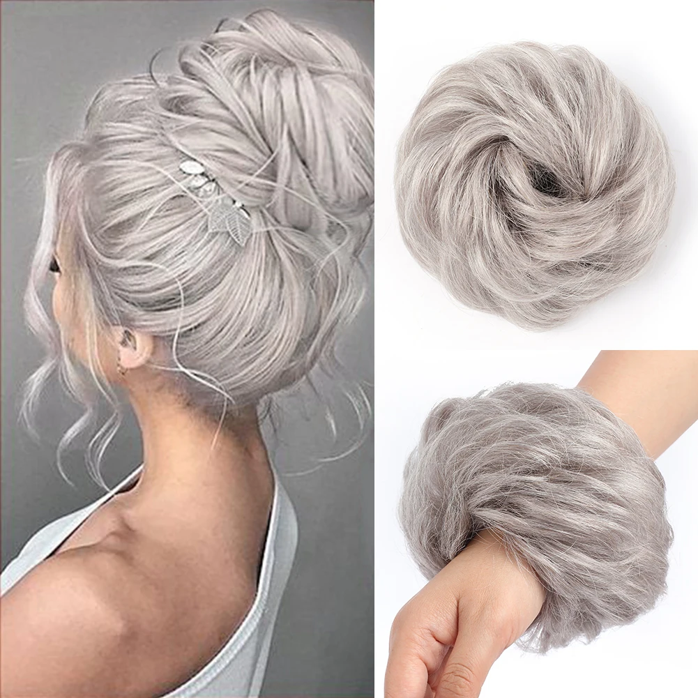 합성 지저분한 롤빵 Chignon 도넛 헤어 패드 탄성 헤어 로프 고무 밴드 블랙 브라운 금발 헤어 피스 여성용