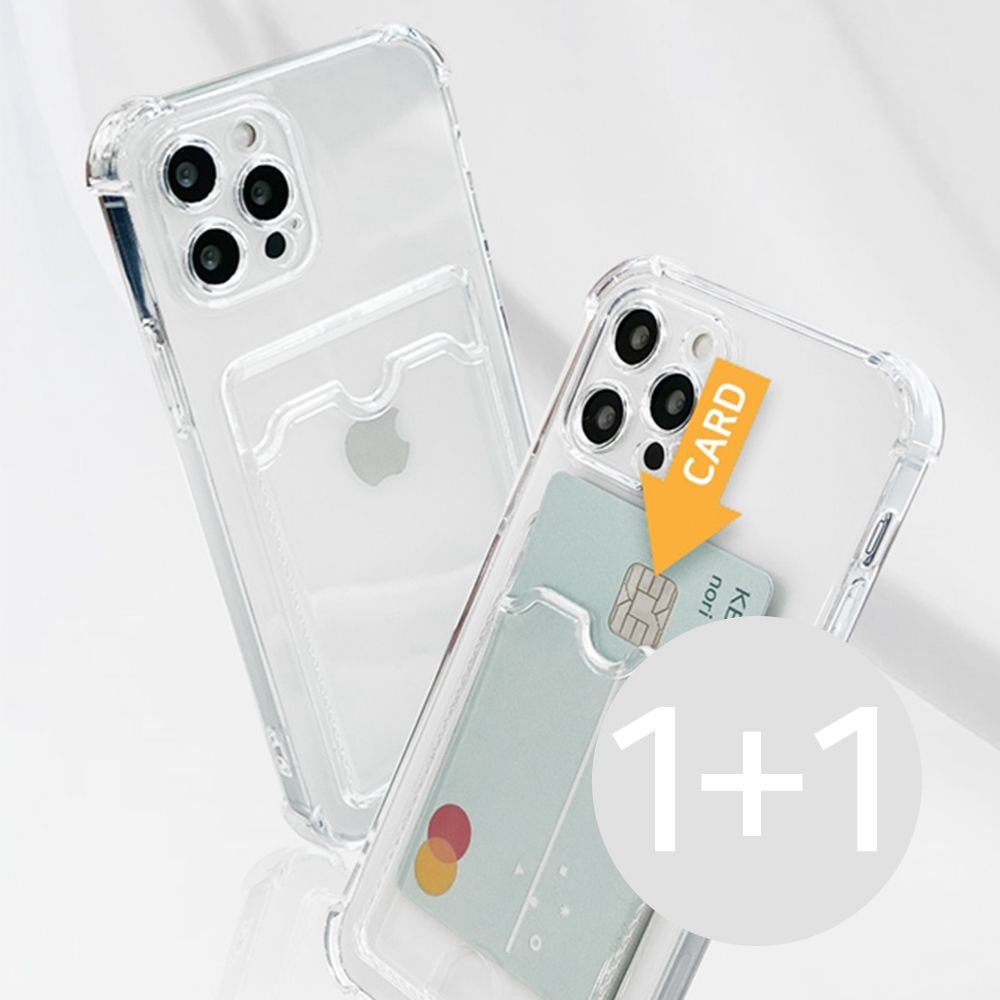 1+1 아머 카드포켓 투명케이스 아이폰15 14 13 12 11 8 7 SE 2 3세대
