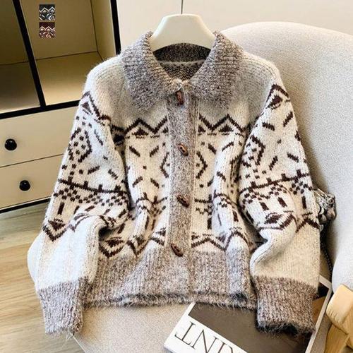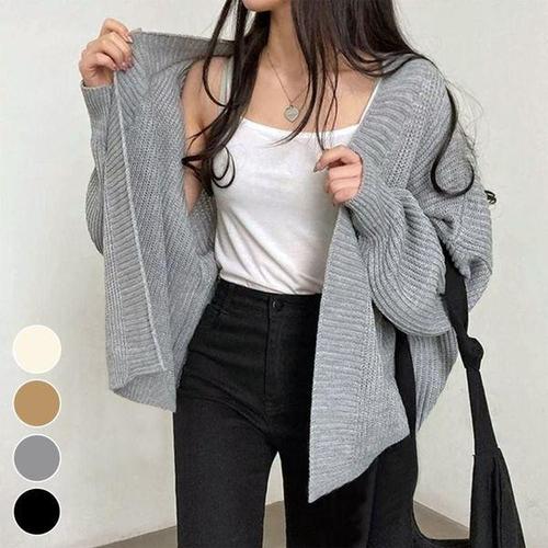 [에이치플러스몰]니트 가디건 도톰 루즈핏 여성 브이넥가디건 여자가디건