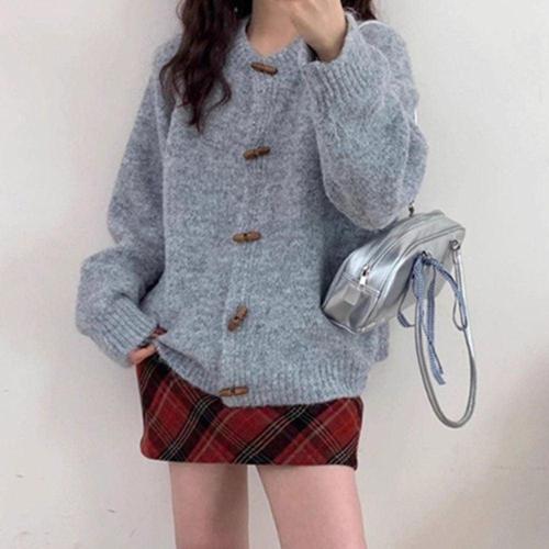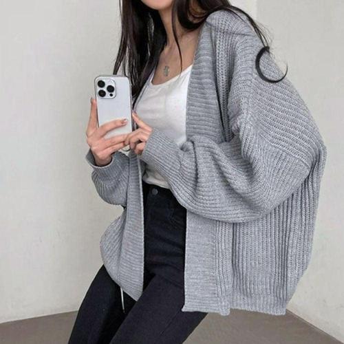 여성 가을 겨울 봄 간절기 루즈핏 꾸안꾸 데일리룩 도톰 니트 가디건 (KYR-WFJX93M)