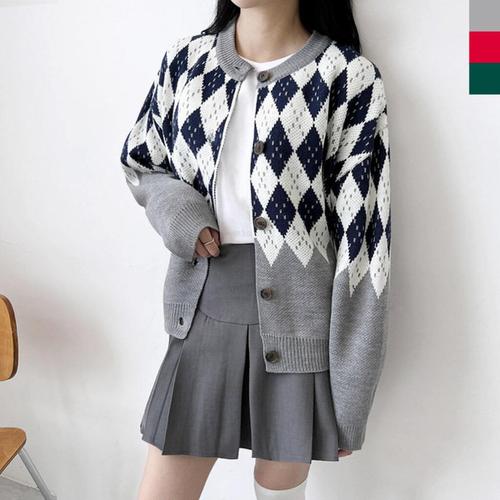 여자가디건 아가일 데일리 도톰니트 가디건